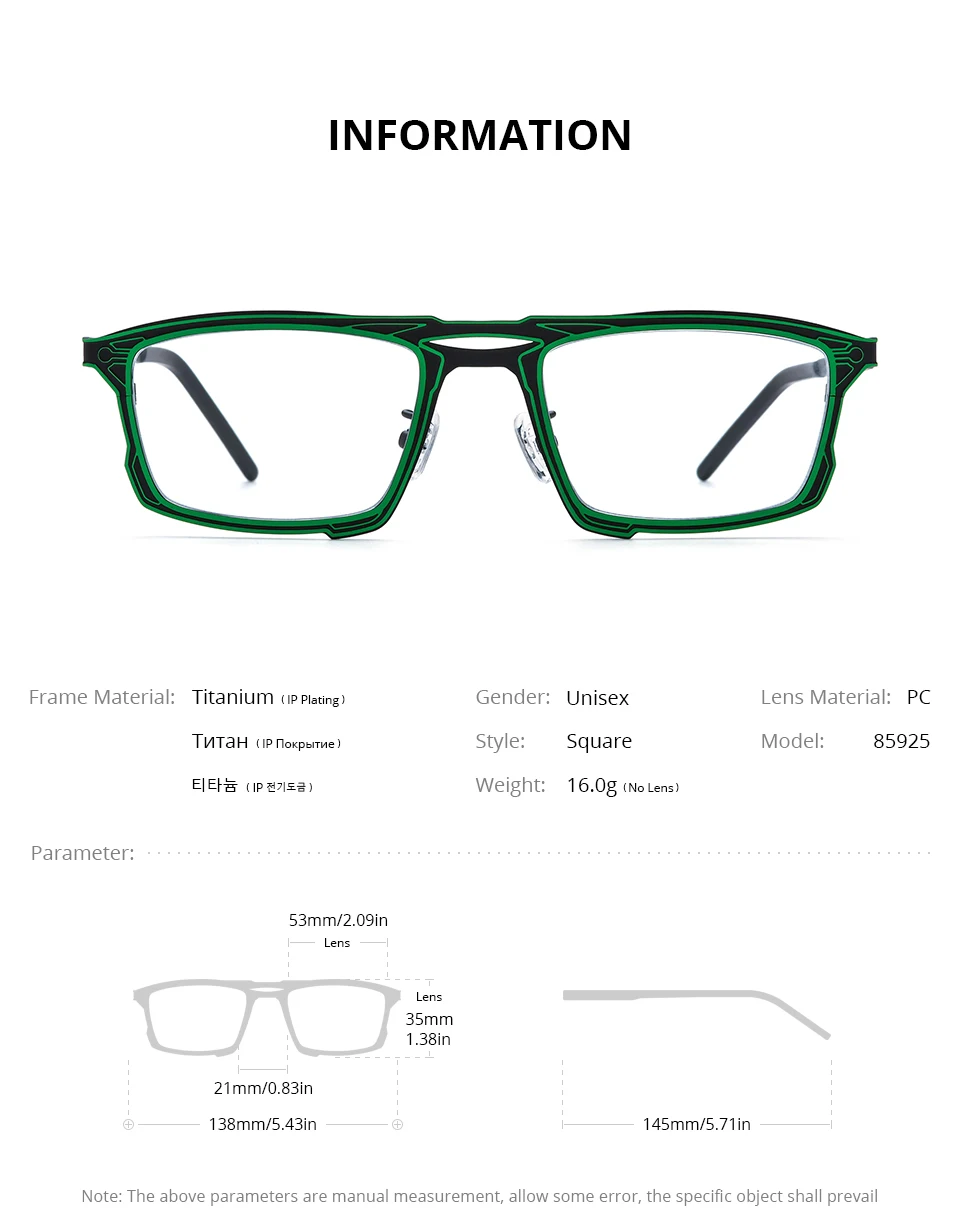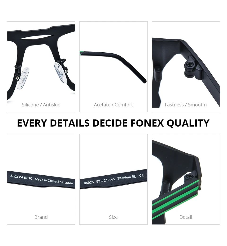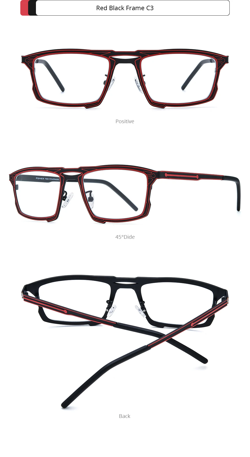 FONEX Pure Titanium Glasses Frame Men Square Eyeglasses 85925