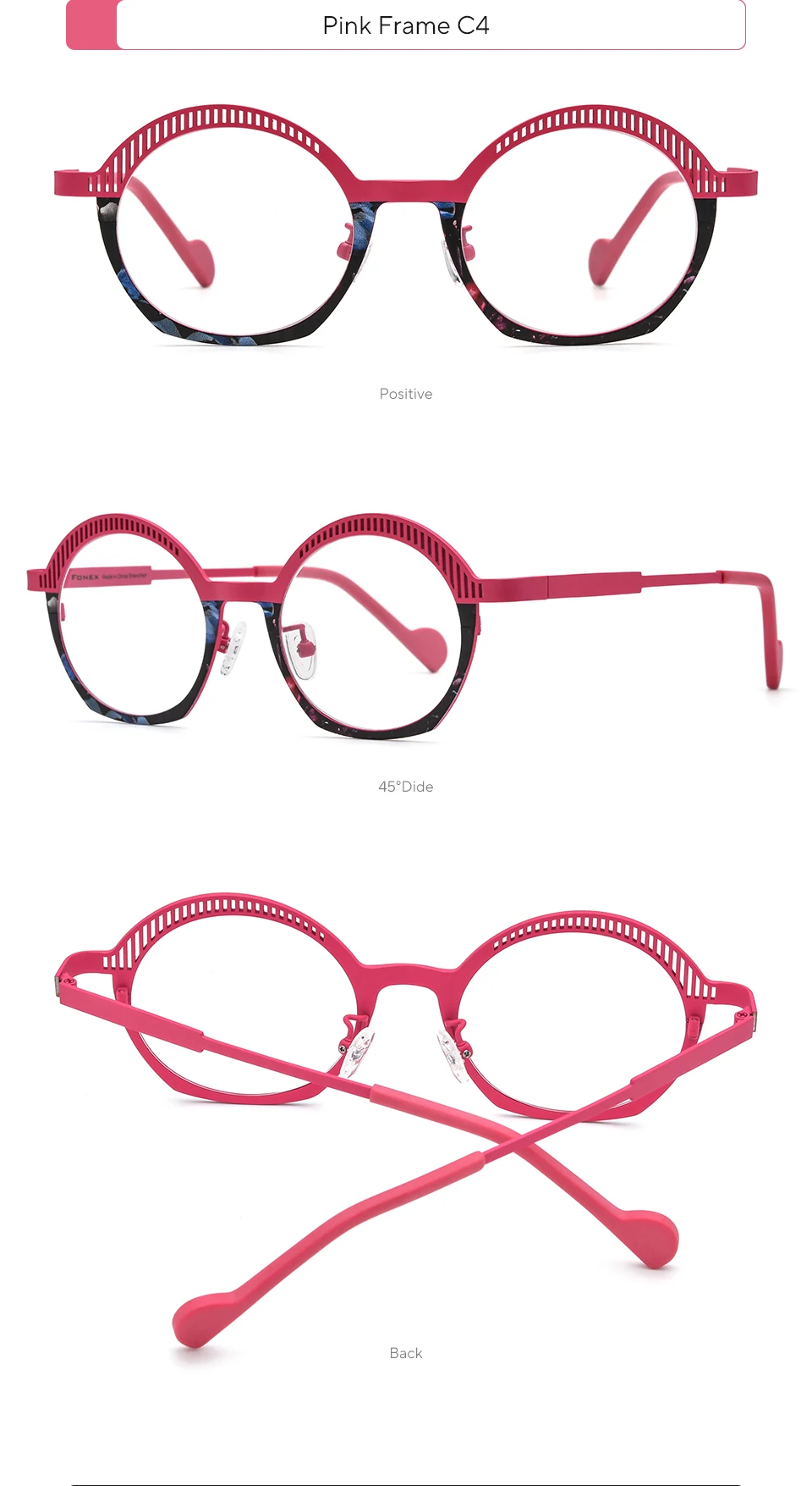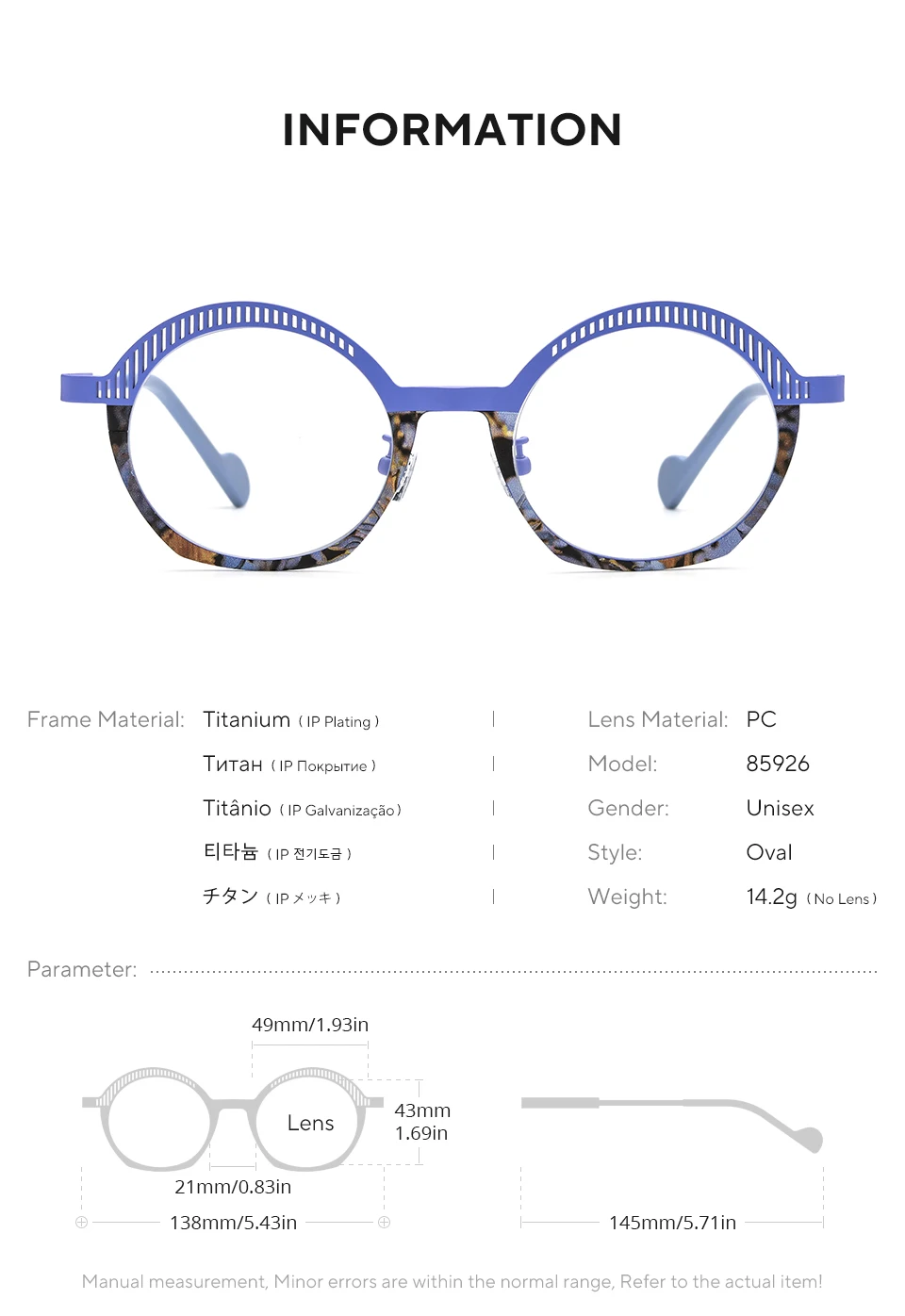 FONEX Pure Titanium Glasses Frame Women Oval Eyeglasses 85926